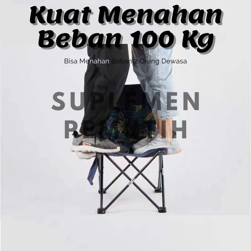 Kursi ini memiliki rangka kokoh yang mampu menahan beban hingga 100 kg, dengan desain kaki berbentuk X yang stabil dan tidak mudah patah. Sambungan dilapisi pelat pelindung agar lebih tahan lama. Bentuknya ringkas dan bobotnya ringan, sehingga mudah dibawa dan dipasang di mana saja.