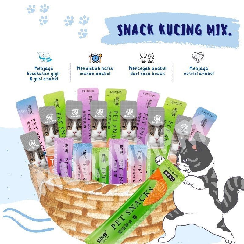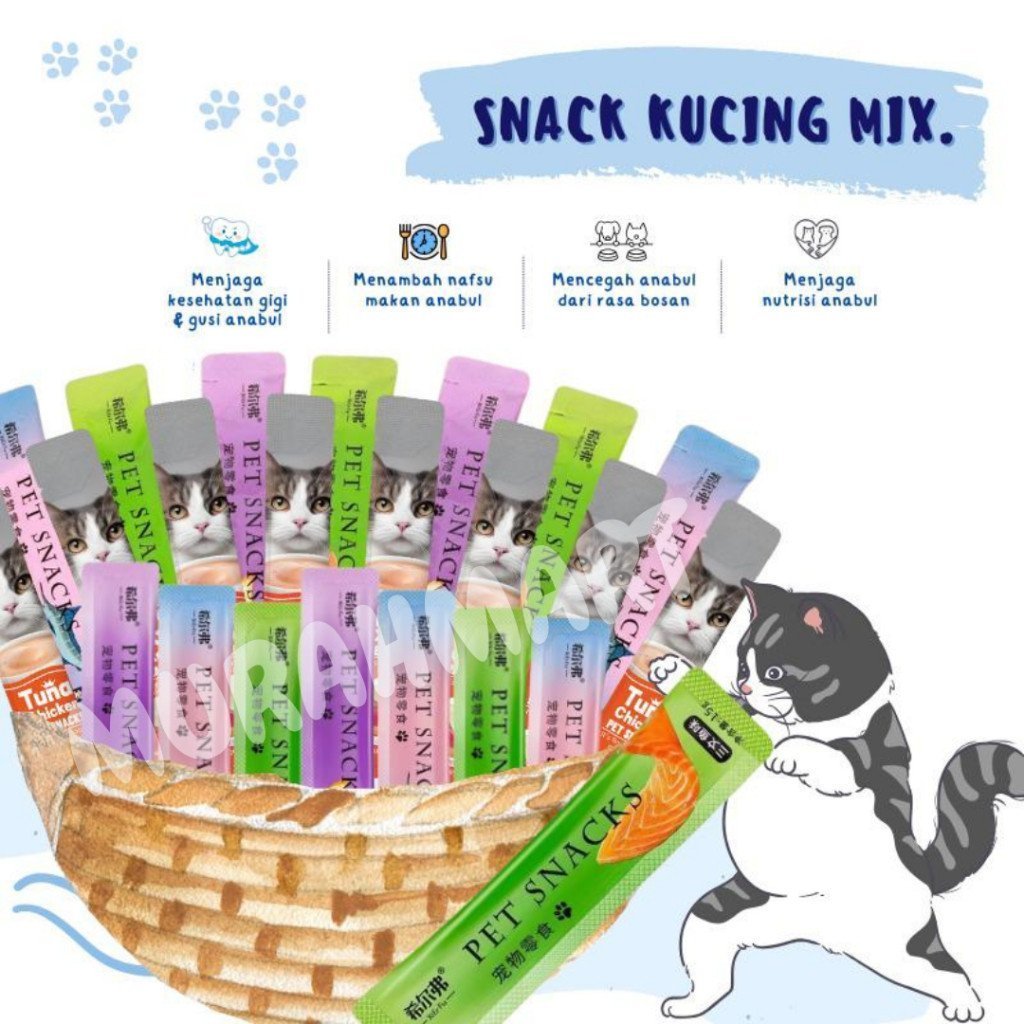 Snack Kucing Basah Campur (50 PCS) adalah camilan sehat untuk kucing, terbuat dari 100% daging asli. Dengan rasa yang lezat dan tekstur lembut, snack ini menjadi favorit banyak kucing dan cocok dijadikan makanan tambahan sehari-hari.