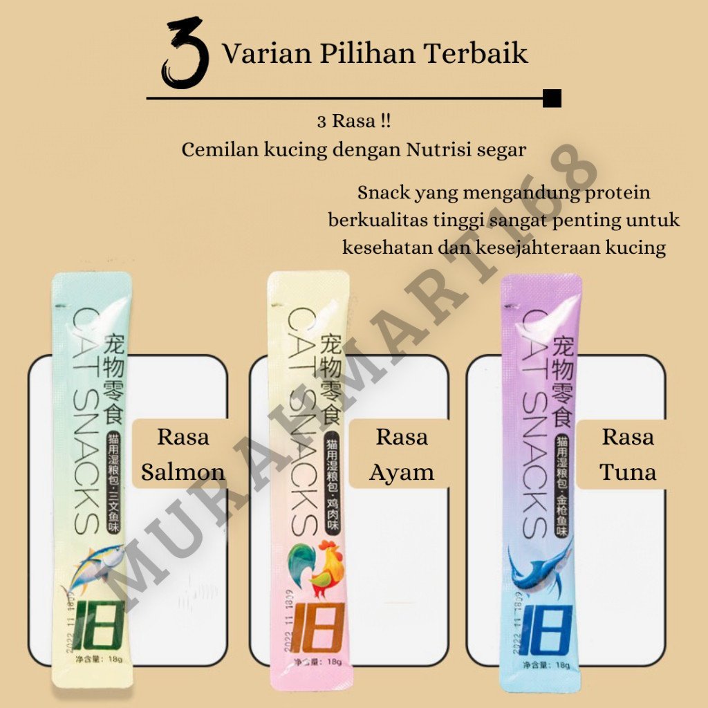 Snack kucing basah ini adalah camilan favorit kucing yang terbuat dari 100% daging asli. Diformulasikan untuk memenuhi kebutuhan nutrisi anabul, serta membantu meningkatkan nafsu makan kucing kesayangan Anda.