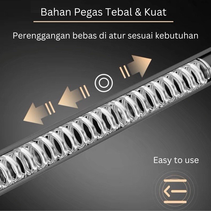 Tiang Ajaib dirancang dengan sistem pemasangan praktis, hanya perlu diputar untuk menyesuaikan panjang, lalu dipasang di antara dua sisi. Meski tanpa paku, tiang ini mampu menempel dengan kuat berkat lapisan karet penahan di kedua ujungnya. Bahan stainless steel memberikan kekuatan dan daya tahan tinggi, membuat tiang ini stabil meskipun digunakan untuk menopang beban tirai atau pakaian.