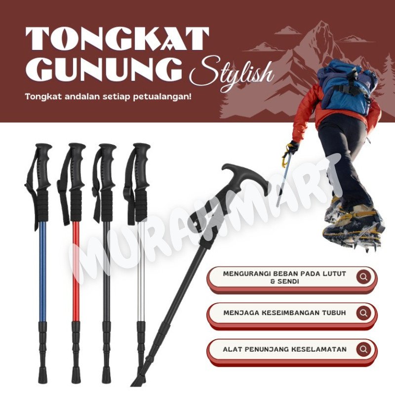 Tongkat Gunung atau Tongkat Haiking adalah alat bantu pendakian yang ringan dan kokoh, dirancang khusus untuk mendukung aktivitas hiking, trekking, dan pendakian di berbagai medan. Tongkat ini membantu menambah kenyamanan dan keamanan selama menjelajahi jalur terjal.